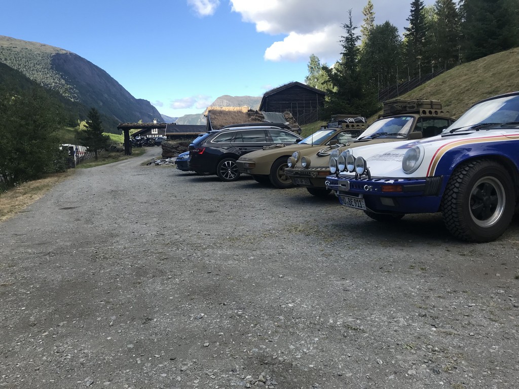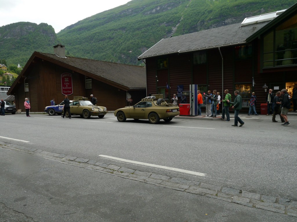 Nun denn…. erstmal ein Stück nach Geiranger zurück und alle Autos vollgetankt. Dort wimmelten deutsche Touristen wie Ameisen herum. Die Autos wurden bestaunt, fotografiert, die üblichen Fragen gestellt, die üblichen Antworten gegeben 😊.